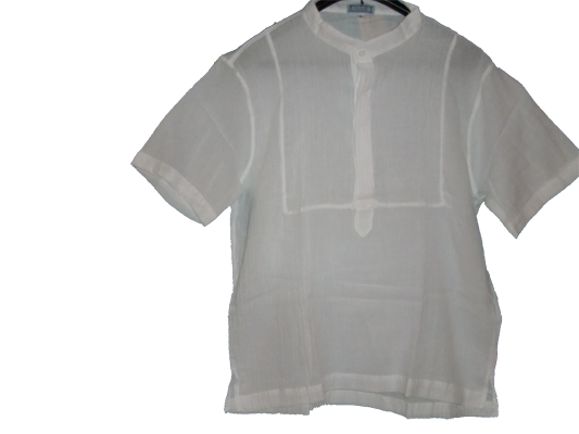 : Camisa masculina realizado en un material de algodon muy fino, 100%, ideal para un clima calído. Moda Adlib Ibiza. Manga corta. Cuello Mao con botón. Disponible en color blanco solamente. Tallas M, L y XL..